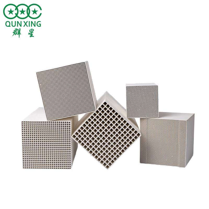 9.1mm的莫來石質(zhì)的可作為脫NOx催化劑載體的基材。草青石質(zhì)蜂窩陶瓷還可以作為柴油機(jī)碳煙過濾器,該過濾器是將蜂窩陶瓷的單元網(wǎng)眼兩端面相互交錯(cuò)封死,而利用多孔薄壁構(gòu)成的過濾器。當(dāng)氣孔率為35~55%平均孔徑控制在10~35um,其碳煙粒子捕集率可達(dá)40~95%。另外,蜂窩陶瓷還可以作為熱交換器用蓄熱體、熔融金屬過濾器、化工填料窯具及隔熱材料等。